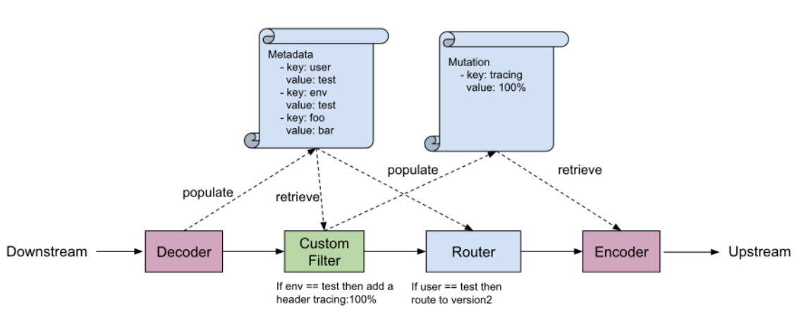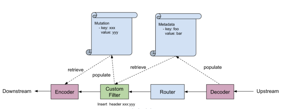 MetaProtocol Proxy 中有两个重要的数据结构:Metadata 和 Mutation。元数据用于路由,而 Mutation 用于标头操作。