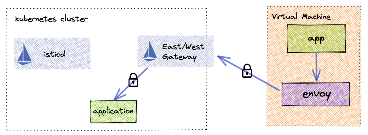 由于 Istio 不会为虚拟机颁发证书,因此需要通过其他方式创建和管理它。为了让 Istio 信任来自虚拟机的流量,颁发的证书必须植根于与服务网格应用程序相同的信任链中。