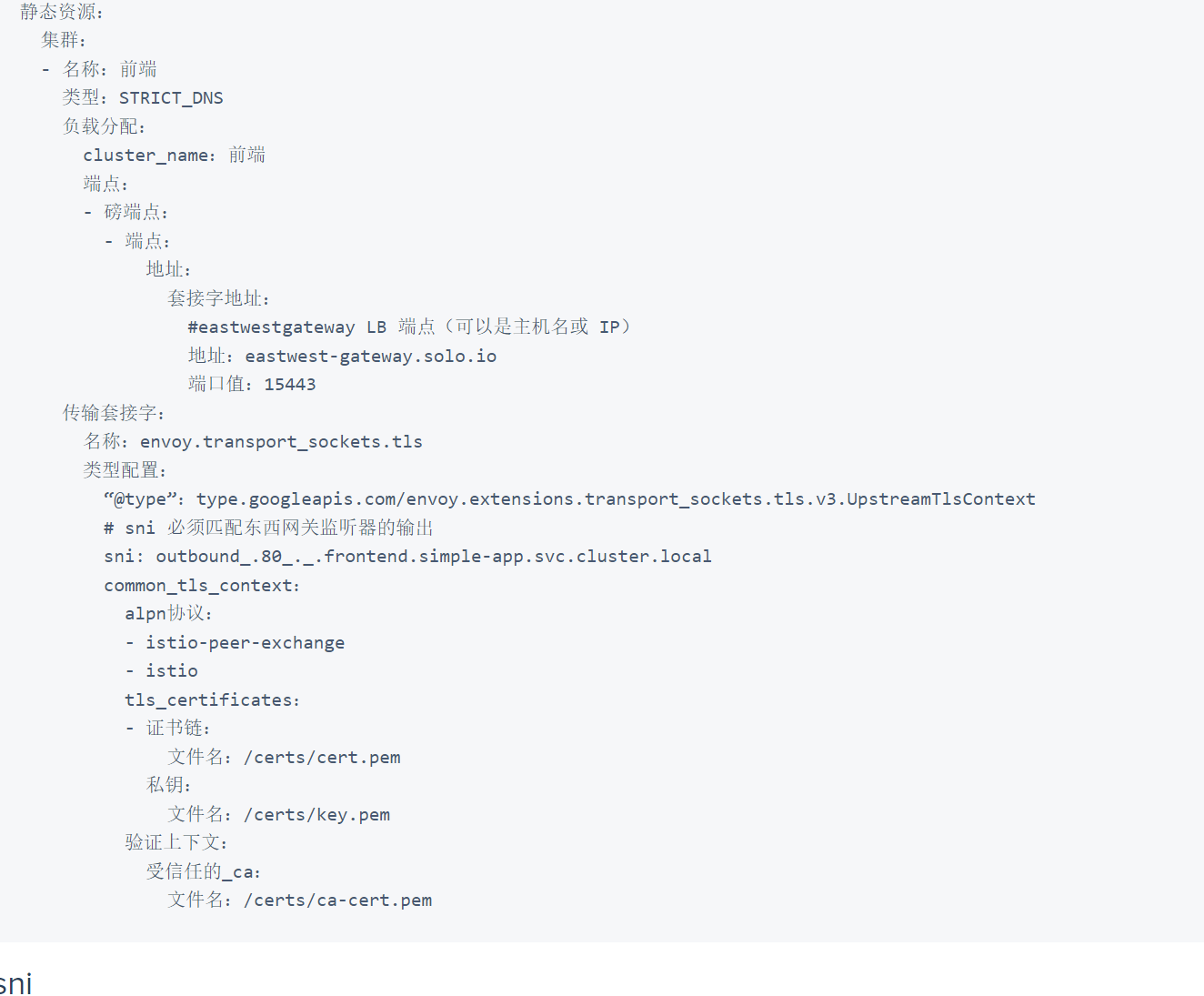 请务必注意您希望与之通信的网格应用程序的 SNI 值,因为 Envoy 配置中将需要它们。