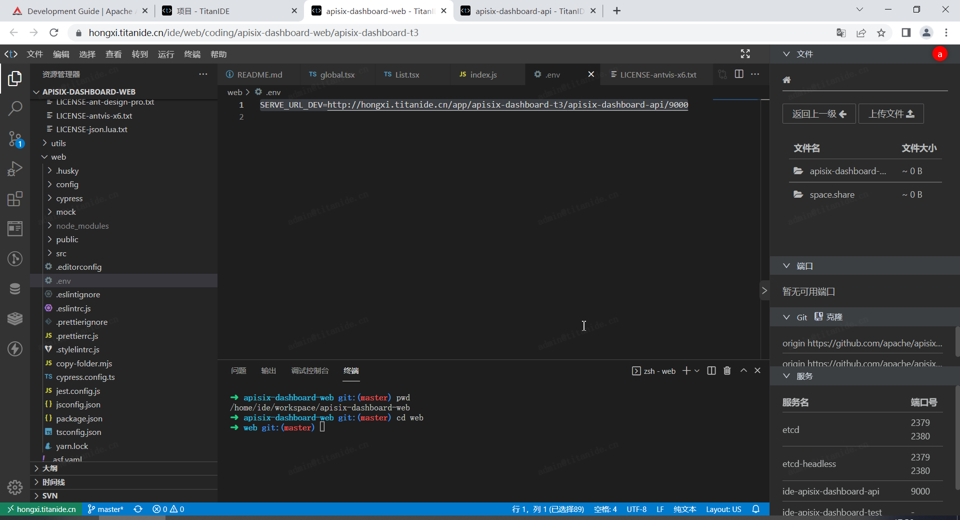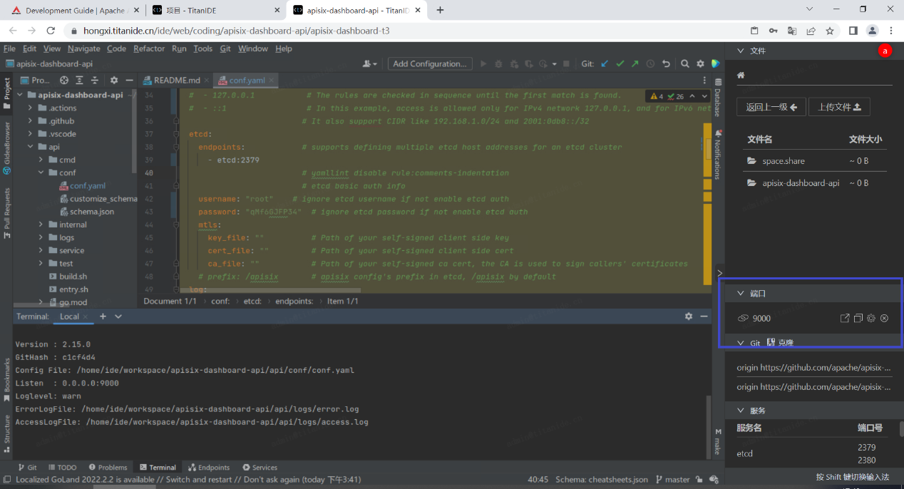 原以为准备工作要很复杂,没想到出奇的容易,一方面得益于APISIX-Dashboard这个项目代码确实准备的对开发者比较友好,二是自然我们TitanIDE功能强大、方便使用 是不是老马卖瓜,请往下看。