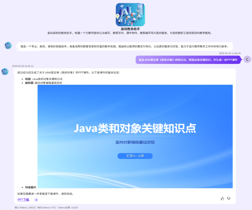 · 教师服务:专业教案生成、科研项目申报政策、设备采购流程、学术会议报销规则。