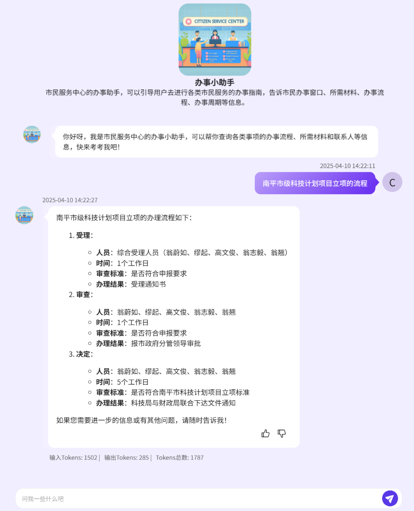 · 市民服务助手:民生办事指南智能助手(24小时答复市民有关政务服务、项目申请、社保等高频事项)。