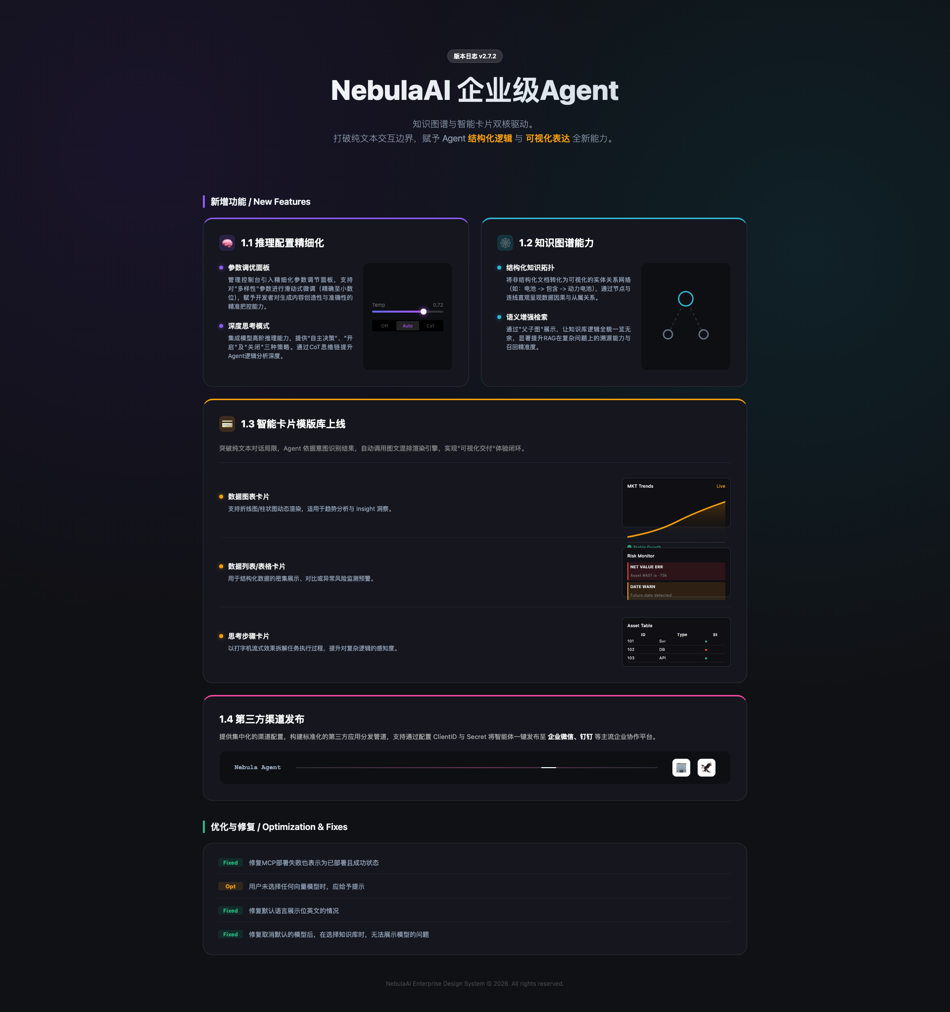 本次版本不仅延续了我们对智能体交互体验的极致追求,更带来多项“开箱即用”的创新功能,让每一位开发者和用户都能轻松打造更聪明、更懂你的 AI 助手。