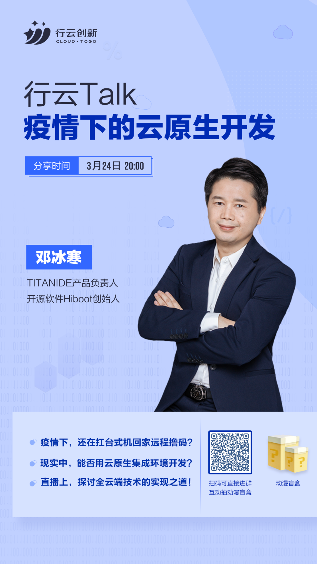 3月24日,行云创新TITANIDE产品负责人邓冰寒将线上直播《疫情下的云原生开发》,分享疫情下,企业如何进行云原生开发,介绍云端IDE的优势所在和行云创新TITANIDE的探索和特别之处。
